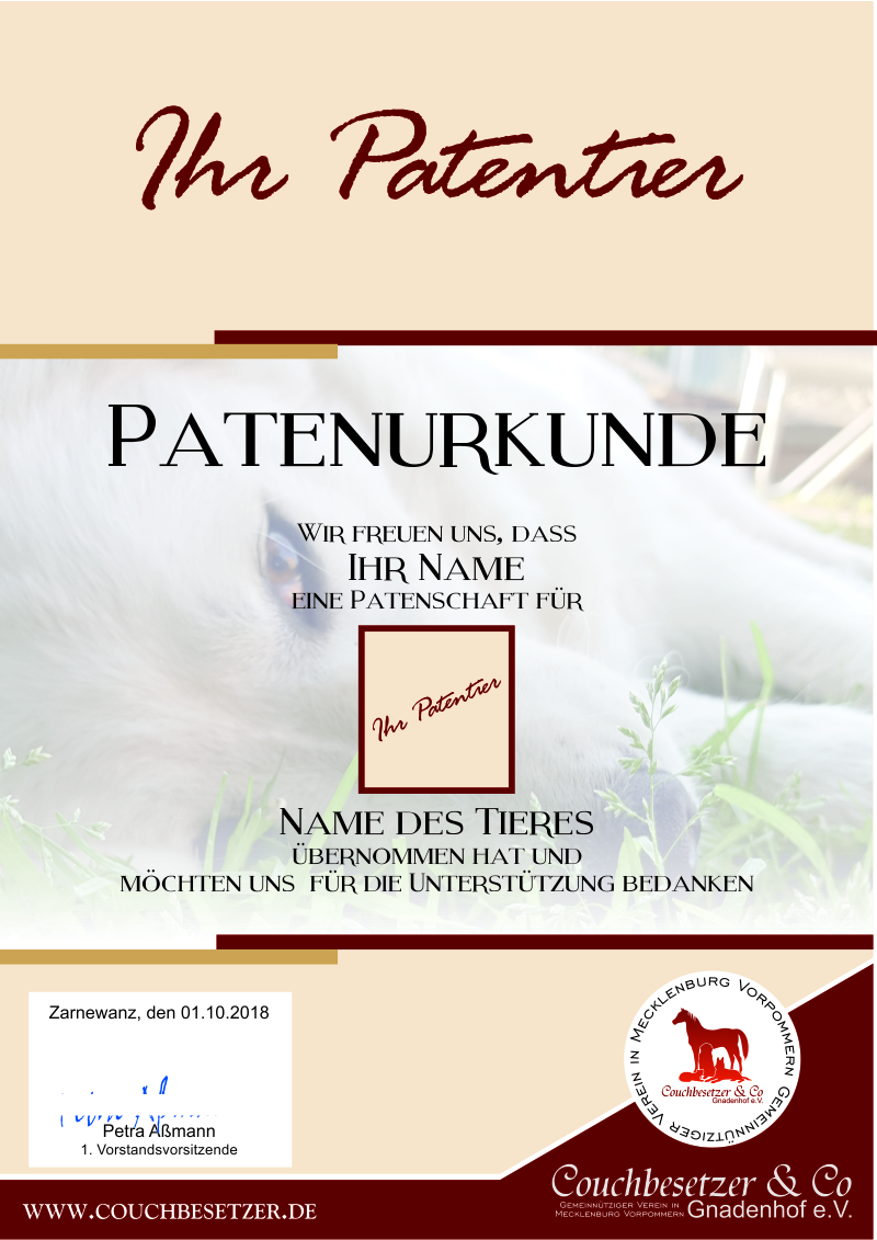 Ein Gnadenhof dient keinem kommerziellen Zweck. Der gemeinnützige Verein ist den staatlichen Institutionen rechenschaft schuldig. Das bedeutet insbesonere, das alle finanziellen oder materiellen Spenden dokumentiert und vorgelegt werden müssen. Die Spenden sind grundsätzlich zweckgebunden. Sie müssen der Versorgung und Pflege der Tiere zu gute kommen. Eine private Nutzung der Gelder, durch Vereinsmitglieder ist nicht gestattet. Eine Spendenbescheinigung dürfen wir ausstellen. Da wir ein gemeinnütziger Verein sind, werden diese vom Finanzamt akzeptiert.